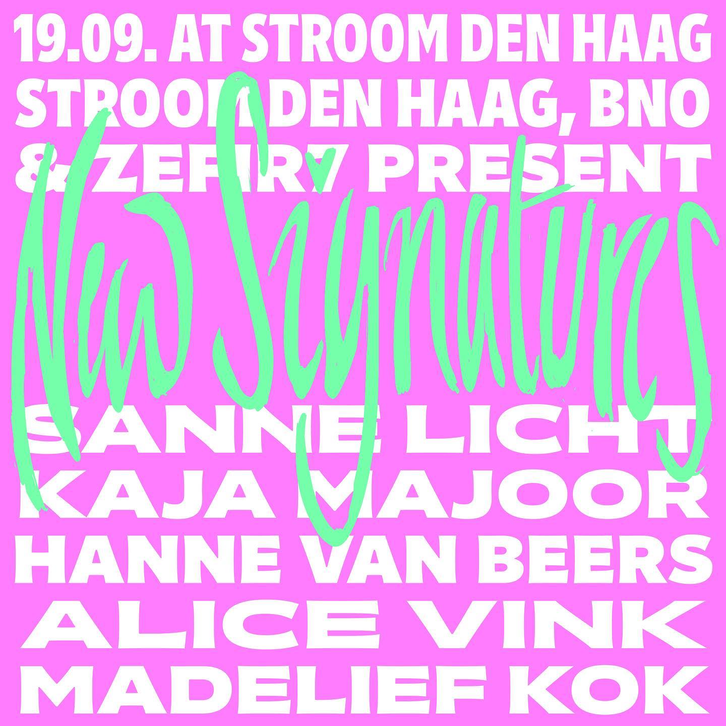 New Signatures gives the stage to the most talented design alumni. Join us to discover the work of Hanne van Beers (ArtEZ Arnhem Product Design), Madelief Kok (HKU Graphic Design Media), Sanne Licht (ArteEZ AKI Enschede Crossmedia Design), Kaja Majoor (WDKA Illustration & KC) + Diederik Smulders, Alice Vink (KABK Graphic Design).